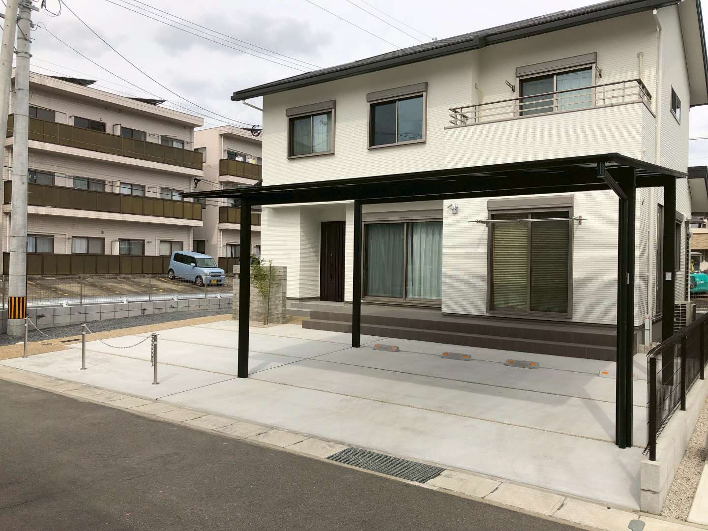 駐車スペースのチェーンポールや、植栽の配置など、細部までお施主様のこだわりを形にするお手伝いができたことを光栄に思います。