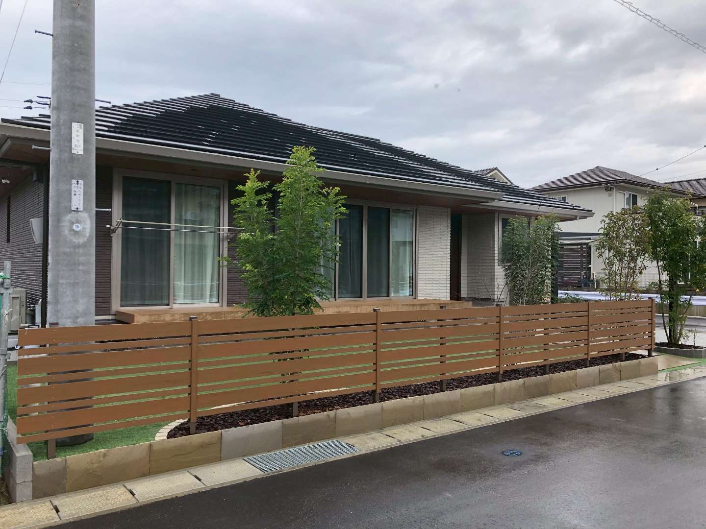 道路側には木目調の目隠しフェンスを設けることで、プライバシーを確保しながら、ご家族でBBQや日向ぼっこを楽しめるプライベート空間が完成しました。